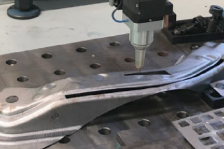 Three-dimensional laser processing of automotive thermoformed parts, 3D metal molded parts, curved parts, and shaped tubes.